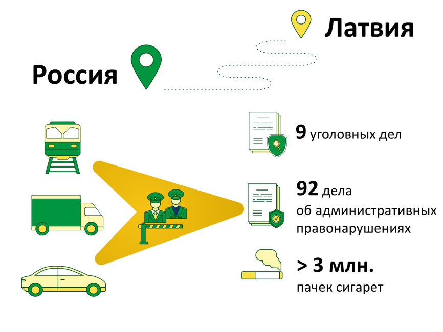Возбуждено 1867 дел об административных правонарушениях. Обнаруженные и изъятые товары: табак и табачные изделия, оборудование и механизмы, товары, к которым применяются запреты и (или) ограничения на ввоз в РФ или вывоз, лесоматериалы, контрафактные товары, товары народного потребления.