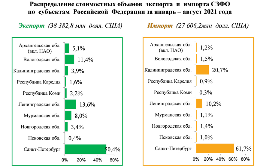 Основной объем взимания в федеральный бюджет таможенных платежей в Северо-Западном регионе приходится на Балтийскую (67,89%) и Северо-Западную электронную (31,89%) таможни.