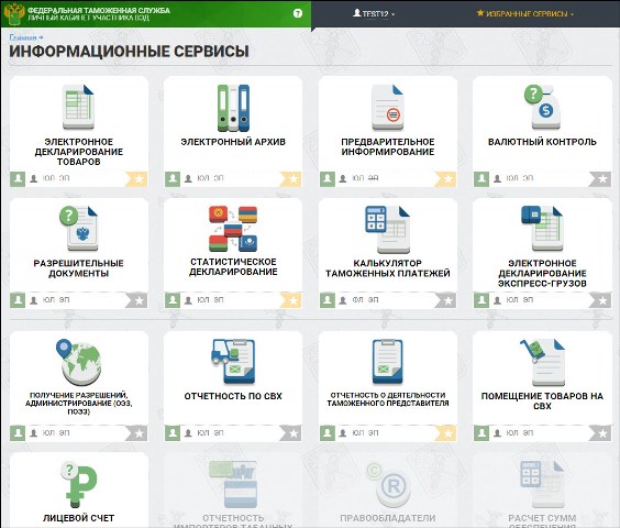 Для приема отчетности от физических и юридических лиц в электронном виде, таможенная служба создала интернет-сервис «личный кабинет». Пользователь может работать с информационными сервисами, которыми располагает «личный кабинет» участника ВЭД. Круг сервисов зависит от наличия электронной подписи. Благодаря нововведению, обмен информацией между декларантом и таможенным органом происходит значительно быстрее, чем в физических отделениях и с меньшими затратами.