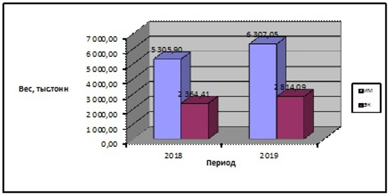 - Снижение обусловлено понижением стоимостного объема импорта на 24%, - пояснила заместитель начальника таможни Юлия Тулумбасова. - Стоимостной объем экспорта увеличился на 22,9% и составил 50,31 млн $.