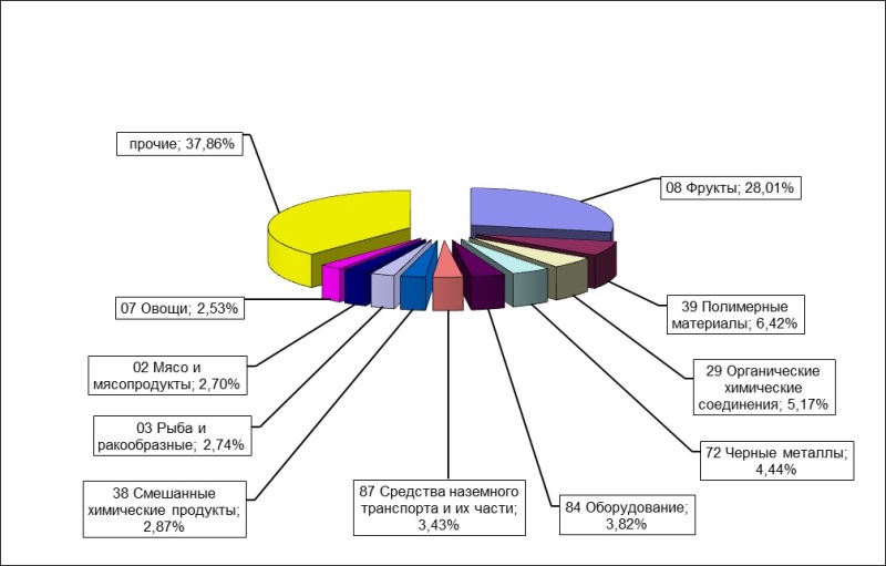 Внешнеэкономическую деятельность осуществляли 164 участника ВЭД, из них 111 участников (68%) – юридические лица, обеспечивающие около 90% стоимостных и физических объемов (25,56 млн долл. и 13,55 тыс. тонн).