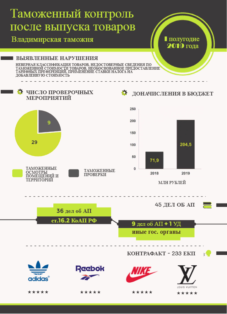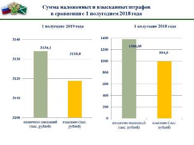 По результатам контрольных мероприятий в первом полугодии 2019 года в деятельности 3139 проверенных лиц было выявлено более 9 тыс. нарушений. Возбуждено 2449 дел об административном правонарушении и 111 уголовных дел.