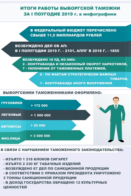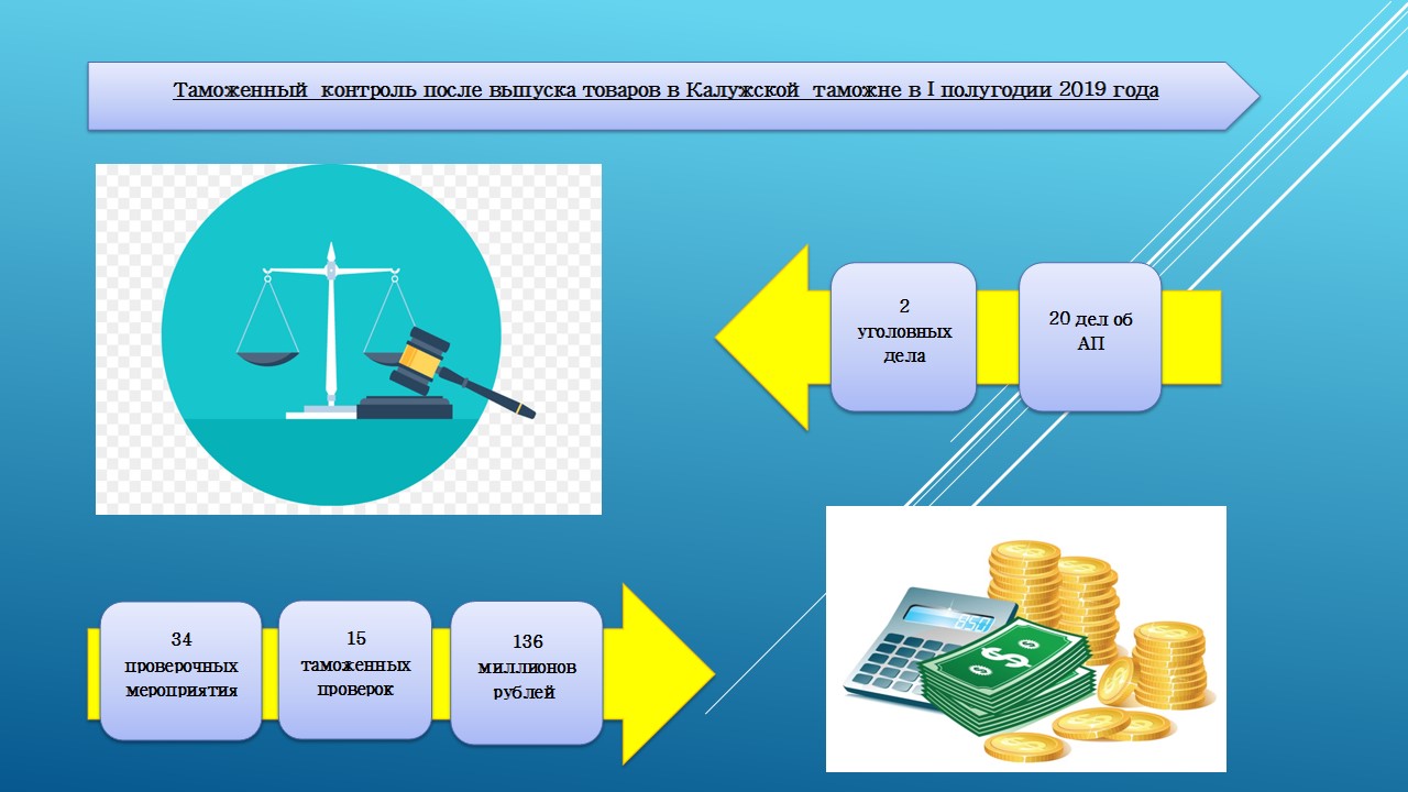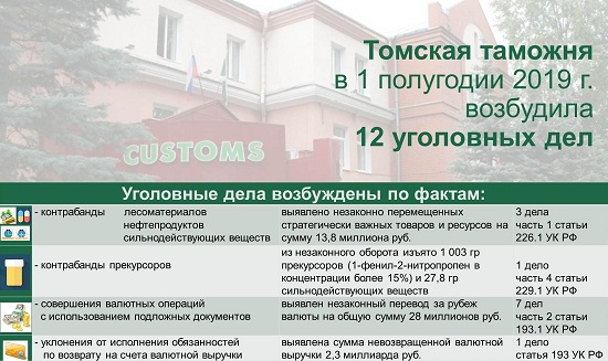 По итогам правоохранительной деятельности в 1 полугодии 2019 года возбуждено 873 дела об административных правонарушениях, что на 34,1% больше по сравнению с аналогичным периодом прошлого года (651 дел об АП). Общая сумма взысканных административных штрафов составила более 900 тыс. рублей. Возбуждено 4 уголовных дела, три из которых – по фактам уклонения от уплаты таможенных платежей. Сумма уклонения от уплаты таможенных платежей составила более 7 млн рублей.