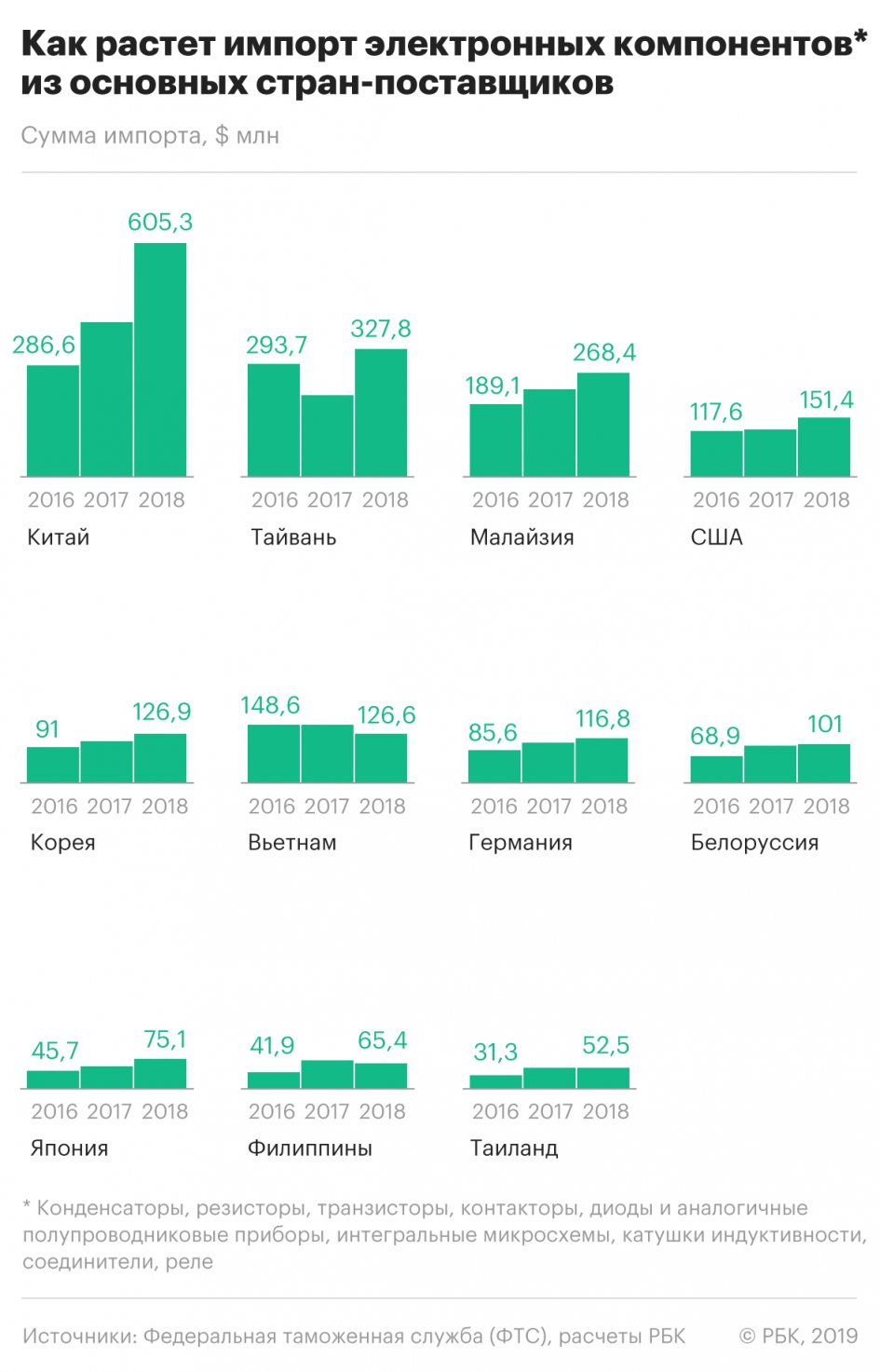 В январе-апреле 2019 года объем российского экспорта интегральных электросхем вырос на 10% по сравнению с аналогичным периодом 2018 года и составил 15,2 млн долларов.