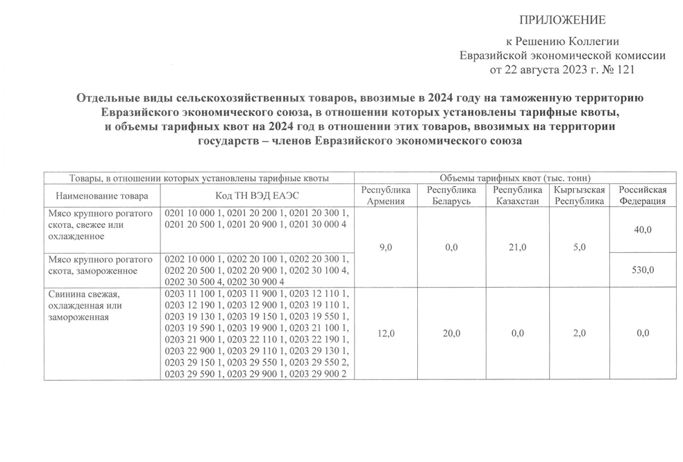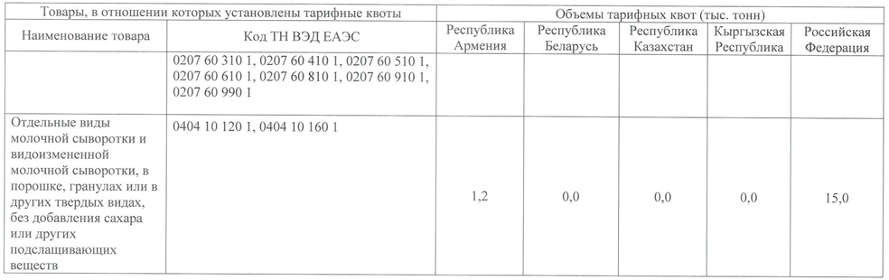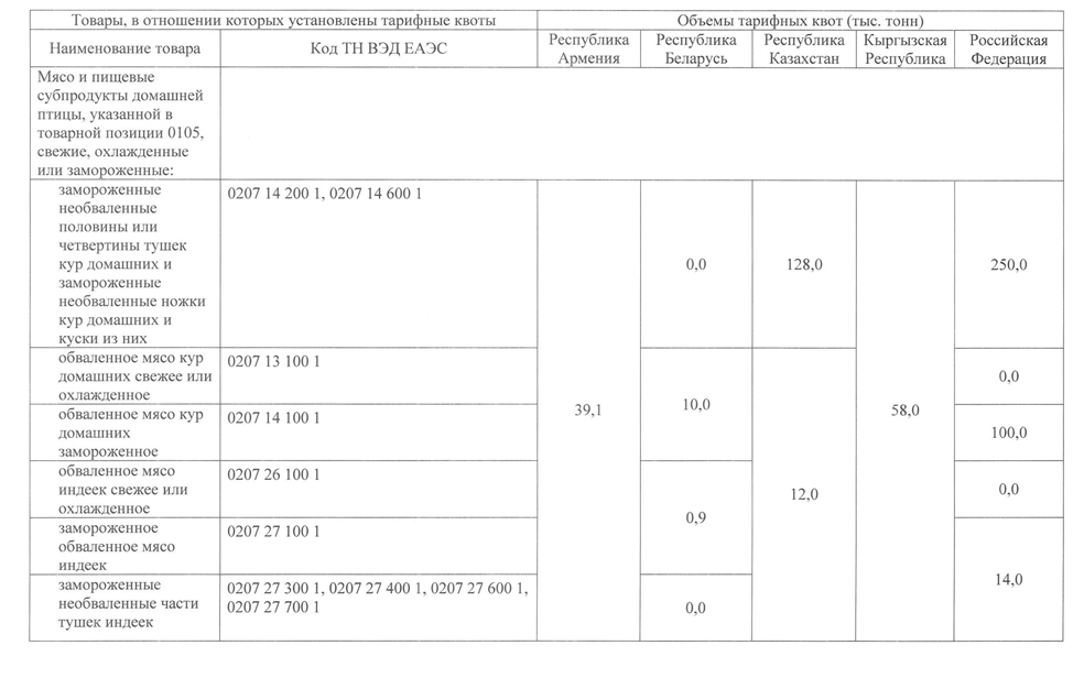 В соответствии со статьей 47 Договора о Евразийском экономическом союзе от 29 мая 2014 г., с приложением № 7 к указанному Договору, пунктом 1 части 2 статьи 21 Федерального закона "Об основах государственного регулирования внешнеторговой деятельности", частью 2 статьи 11 Федерального закона "О таможенном регулировании в Российской Федерации и о внесении изменений в отдельные законодательные акты Российской Федерации" и в целях обеспечения продовольственной безопасности Правительство Российской Федерации постановляет: